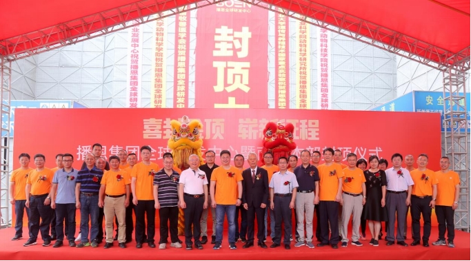 華南農(nóng)業(yè)大學(xué)著名教授傅偉龍老師,原廣東省農(nóng)科院院長(zhǎng)、中國(guó)畜牧獸醫(yī)學(xué)會(huì)動(dòng)物營(yíng)養(yǎng)分會(huì)蔣宗勇理事長(zhǎng),白云區(qū)投促局調(diào)研員陳文炳,廣東省廣州市高新技術(shù)產(chǎn)業(yè)開(kāi)發(fā)區(qū)民營(yíng)科技園管理委員會(huì)科長(zhǎng)胡可銘,華南農(nóng)業(yè)大學(xué)動(dòng)科院江青艷院長(zhǎng),華南農(nóng)業(yè)大學(xué)教務(wù)處張永亮處長(zhǎng),廣東省科協(xié)事業(yè)發(fā)展中心黨支部何少?gòu)?qiáng)書(shū)記等領(lǐng)導(dǎo)專(zhuān)家、建設(shè)單位代表和播恩集團(tuán)一級(jí)部門(mén)負(fù)責(zé)人參加了本次封頂儀式。