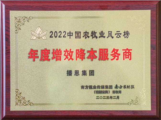 而作為一家專注創(chuàng)新的科技型企業(yè)集團(tuán),播恩以“降本增效”為核心關(guān)注點(diǎn),從解決用戶迫切需求出發(fā),從管理、采購、生產(chǎn)、技術(shù)、服務(wù)等各個(gè)方面真抓實(shí)干,注重細(xì)節(jié)、創(chuàng)新與效率,為用戶提供了基于生物工程技術(shù)的降本增效解決方案。2023年2月21日,第十二屆中國農(nóng)牧業(yè)風(fēng)云會(huì)上,播恩集團(tuán)榮獲“2022年度增效降本服務(wù)商”稱號(hào)。