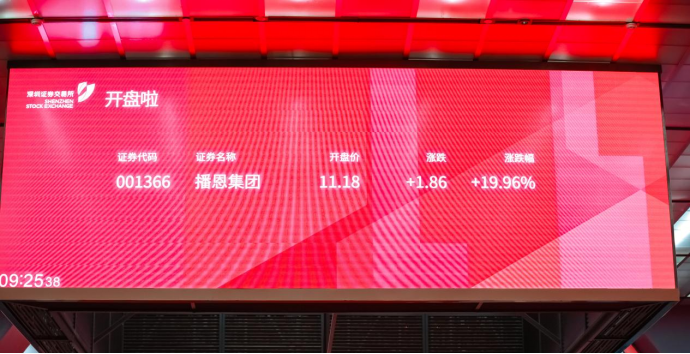 播恩集團開盤價11.18元/股,開盤市值近18億元