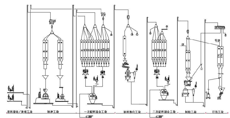 生物發(fā)酵飼料具有適口性高易于消化的特點,現(xiàn)階段被廣泛應(yīng)用于生豬的養(yǎng)殖。因其富含益生菌、活性肽、復合酶等熱敏性生物活性物質(zhì),所以加工過程中對加工溫度有著嚴格的要求。精細化生物發(fā)酵料的加工工藝不但能最大限度的保持飼料中生物活性物質(zhì)的效價,還能提高豬只對飼料原料的利用率和生產(chǎn)性能,從而提升養(yǎng)殖效益。除了傳統(tǒng)的包被和噴涂工藝外,還有高效調(diào)制低溫冷制粒工藝,通過加工工藝的細化能最大程度減少熱敏性原料的營養(yǎng)損失,以及生物活性物質(zhì)的失活。圖3是低溫制粒飼料流程圖(引自段海濤)。