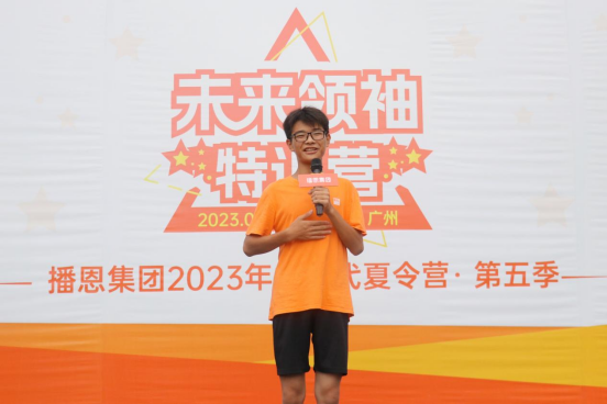 在學(xué)員發(fā)言環(huán)節(jié),本次訓(xùn)練營(yíng)的優(yōu)秀學(xué)員代表李凱旭同學(xué)上臺(tái)發(fā)表感言。跟隨家長(zhǎng)的足跡,李凱旭很高興能親自走進(jìn)播恩,切身感受播恩文化與工作環(huán)境。他期待著,在播二代夏令營(yíng)“理想行動(dòng)、擔(dān)當(dāng)大同”口號(hào)的鞭策下,努力成為更好的自己,探索未至之境,暢游科學(xué)海洋,立志領(lǐng)袖夢(mèng)想。李凱旭分享了夏令營(yíng)期間的點(diǎn)滴收獲,希望可以通過自己的努力考上更好的大學(xué),成為真正的播恩人。