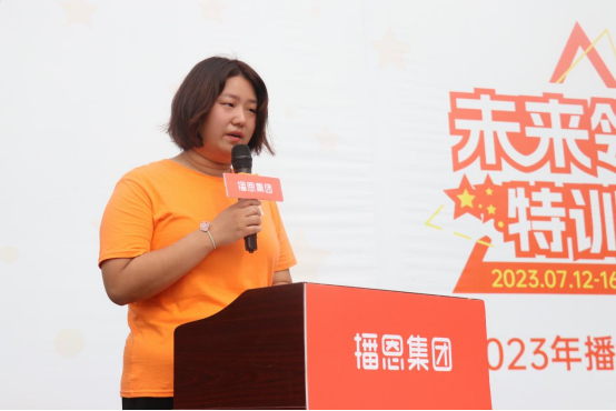 家長(zhǎng)代表任飛女士對(duì)集團(tuán)本次舉辦的夏令營(yíng)表示了最真誠(chéng)的謝意,感謝公司為孩子們搭建的學(xué)習(xí)與交流的平臺(tái)。播二代夏令營(yíng)給孩子們創(chuàng)造了一個(gè)專業(yè)學(xué)習(xí)、開闊視野和能力培養(yǎng)的機(jī)會(huì),發(fā)現(xiàn)了孩子們無限的潛力和創(chuàng)造力,也點(diǎn)燃了孩子們學(xué)習(xí)與交友的熱情。她祝愿播二代夏令營(yíng)越辦越好,也祝愿播恩發(fā)展長(zhǎng)虹。
