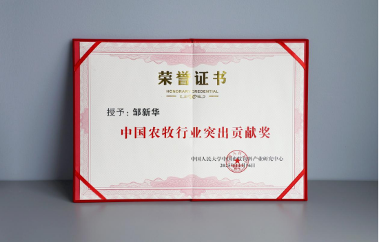 2025年11月16-17日,第22屆AWA大贏家論壇(2025農(nóng)商管理大會(huì))在北京·朗麗茲西山花園酒店盛大召開。作為農(nóng)牧行業(yè)極具影響力的高端盛會(huì),論壇匯聚政產(chǎn)學(xué)研領(lǐng)域精英,共探產(chǎn)業(yè)發(fā)展新路徑。在11月16日歡迎晚宴暨頒獎(jiǎng)盛典上,中國(guó)人民大學(xué)中國(guó)畜牧飼料產(chǎn)業(yè)研究中心正式授予播恩集團(tuán)董事長(zhǎng)鄒新華“中國(guó)農(nóng)牧行業(yè)突出貢獻(xiàn)獎(jiǎng)”,以表彰其數(shù)十年深耕農(nóng)牧領(lǐng)域,在企業(yè)引領(lǐng)、技術(shù)創(chuàng)新與產(chǎn)業(yè)賦能方面的卓越成就。